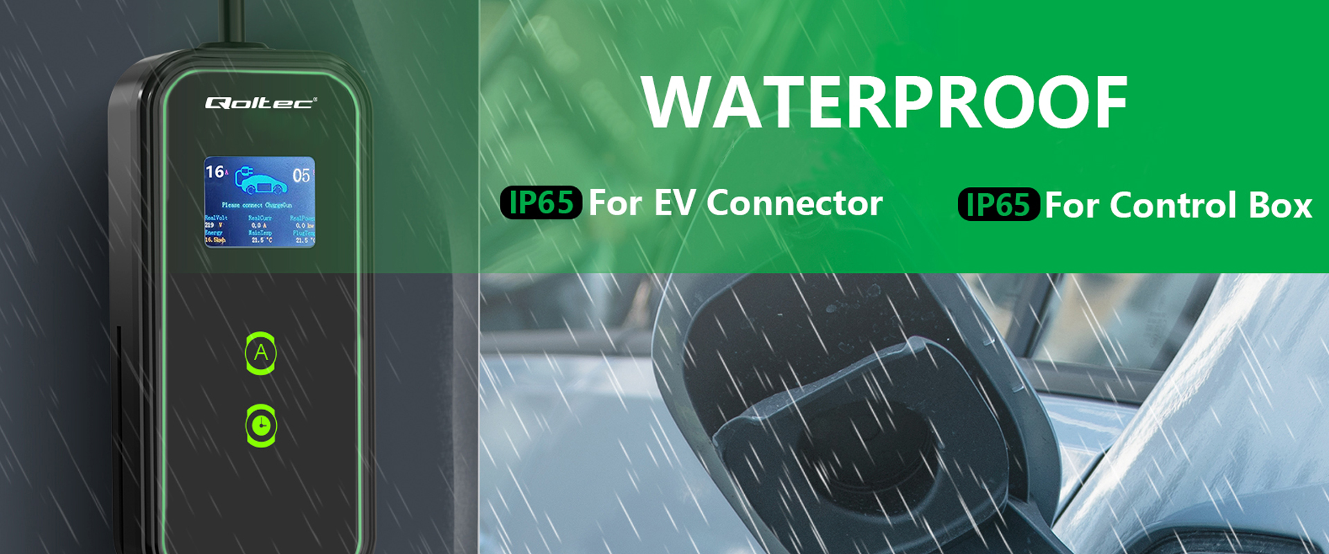Ładowarka posiada złącze typu 2, które jest obecnie oficjalnym standardem Unii Europejskiej i ładuje auta elektryczne wyposażone w odpowiednie gniazdo ładowania. Złącze typu 2 to 7 styków, z których 3 styki lub 5 przeznaczone są do ładowania, a 2 do komunikacji między stacją a samochodem. Kompatybilne z większością samochodów elektrycznych sprzedawanych w Europie. Ładowarka marki Qoltec obsługuje cztery tryby natężenia prądu 8A, 10A, 13A i 16A. Warto dodać, że złącze typu 2 jest przeznaczone dla pojazdów elektrycznych o mocy ładowania większej niż 3kW.